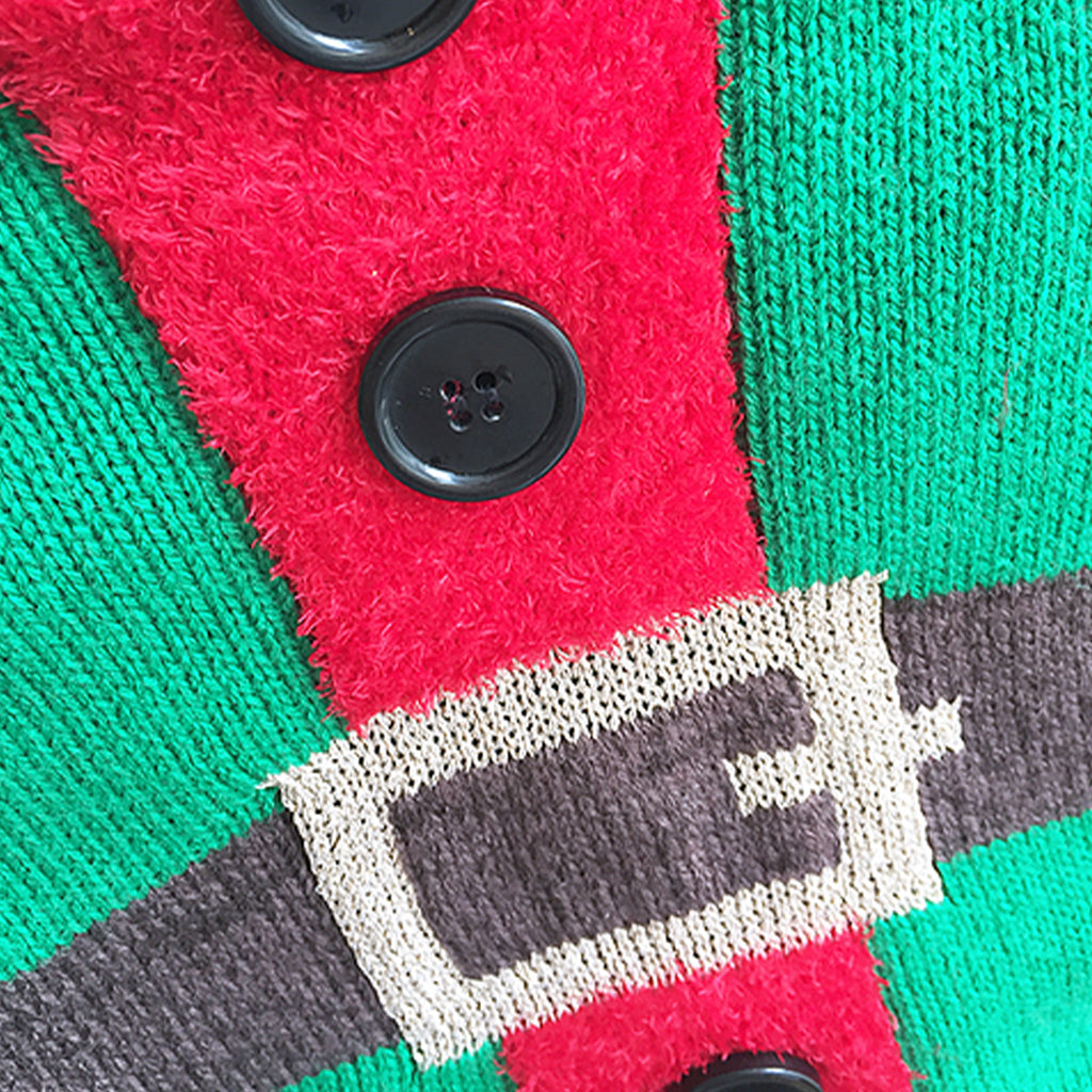 Green knitted jumper with pom hood and fake knitted elf ear.